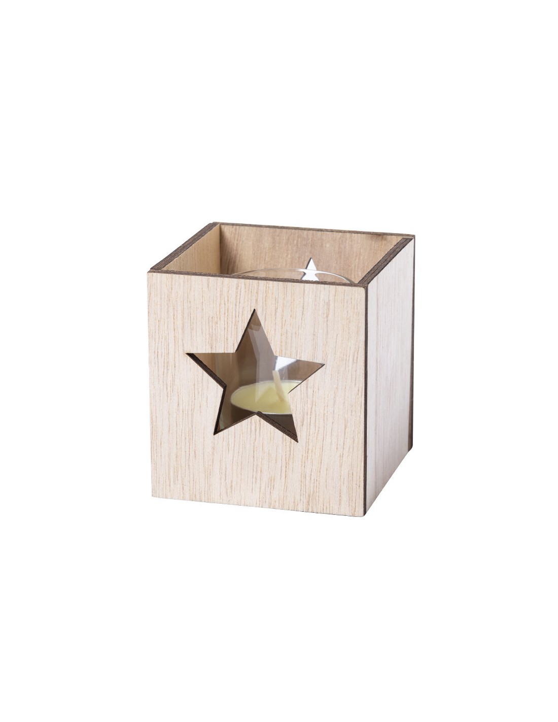 Vela aromática navideña de línea nature y aroma vainilla. Fabricada en cristal, con caja de madera troquelada y original diseño. Presentada en caja individual de color natural. Aroma Vainilla Madera/ Cristal