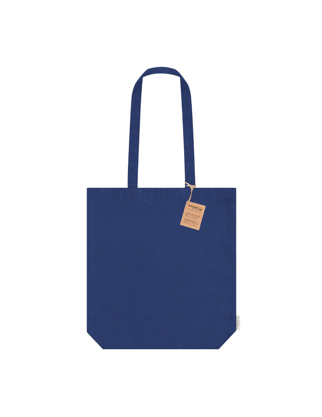 Bolsa confeccionada en algodón orgánico de 270 g/m2 con fuelle en base. Asas largas de 70cm con refuerzo, de acabado cosido. Logotipo en etiqueta lateral y resistencia hasta 10 kg de peso. Algodón Orgánico 270 g/ m2