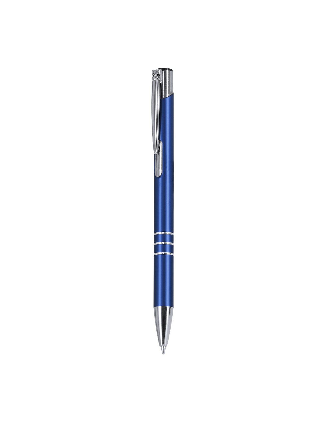 Bolígrafo de mecanismo pulsador. Acabado en aluminio reciclado brillante, de cartucho jumbo y tinta azul.Con distintivo logo de Aluminio Reciclado. Carga Jumbo Aluminio Reciclado