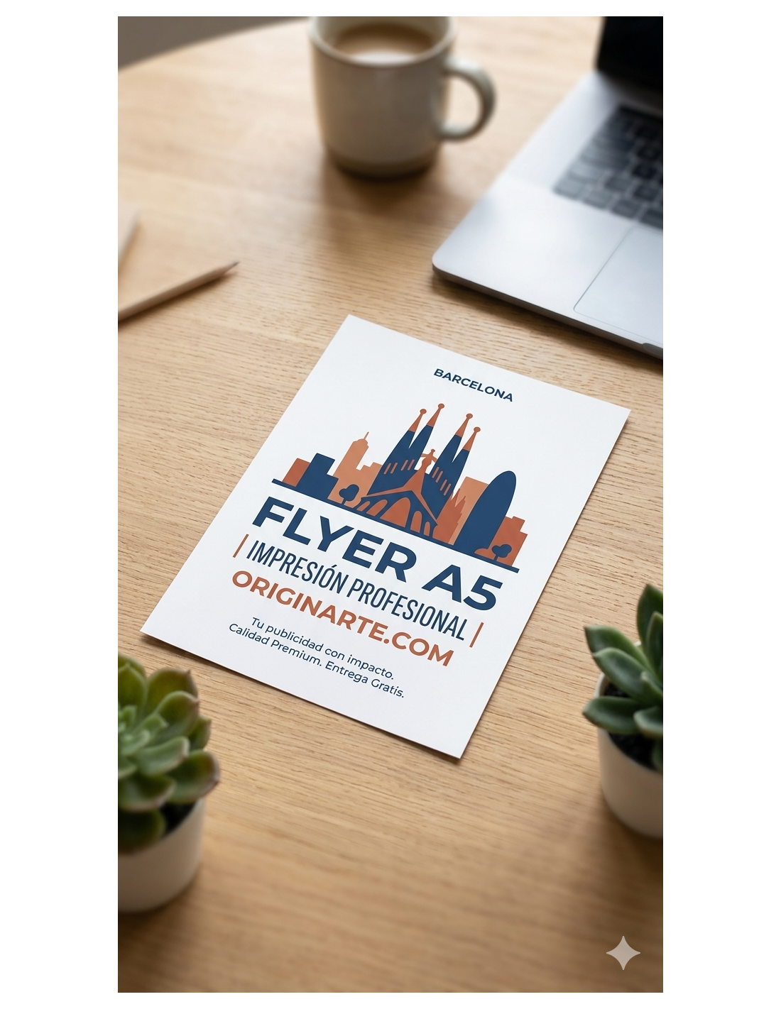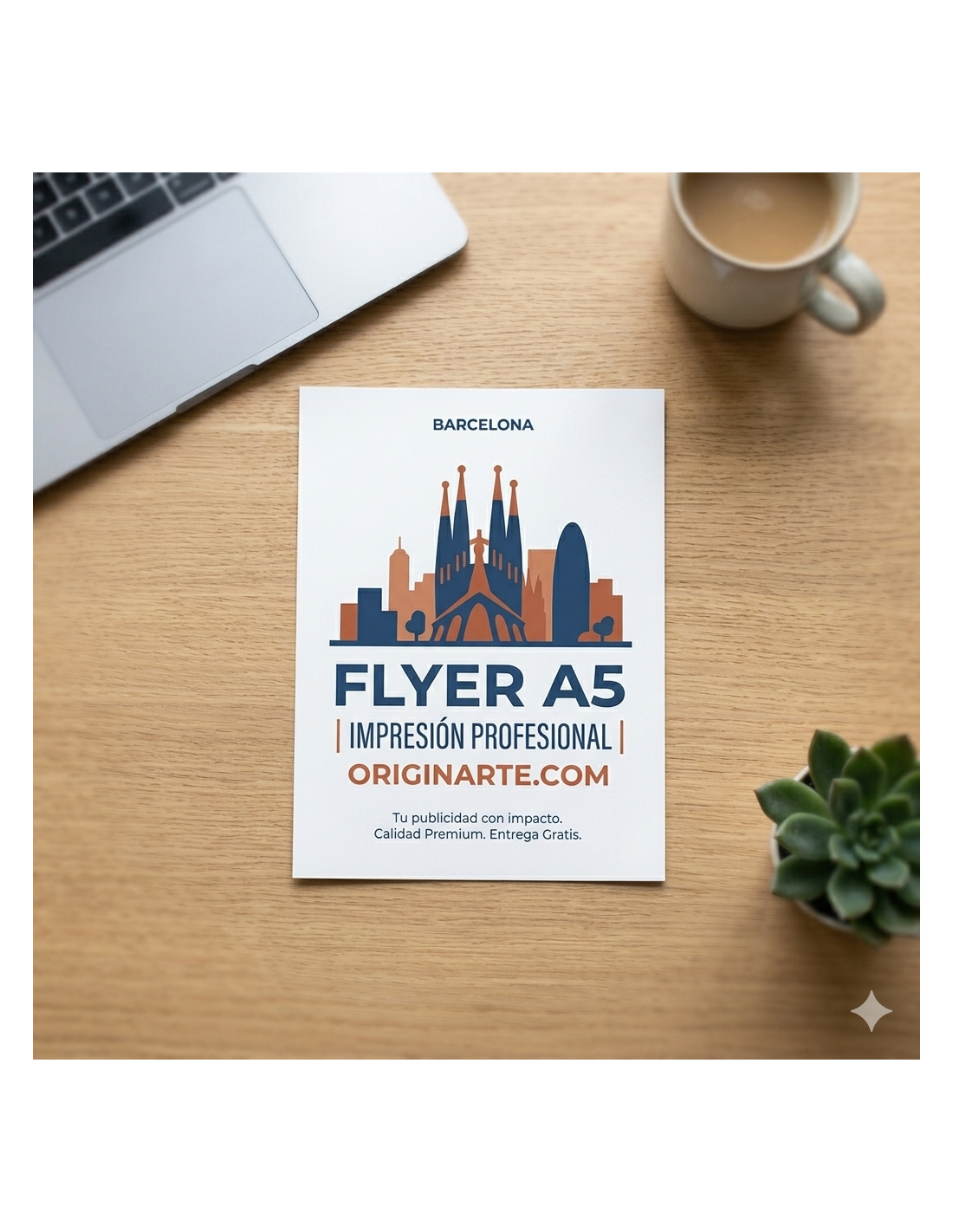 El tamaño estándar de un flyer A5 es de 14,8 x 21 cm. Es exactamente la mitad de un folio normal (A4). Es el tamaño más popular para buzoneo, promociones en mano y cartas de restaurante por su equilibrio entre coste y espacio publicitario.