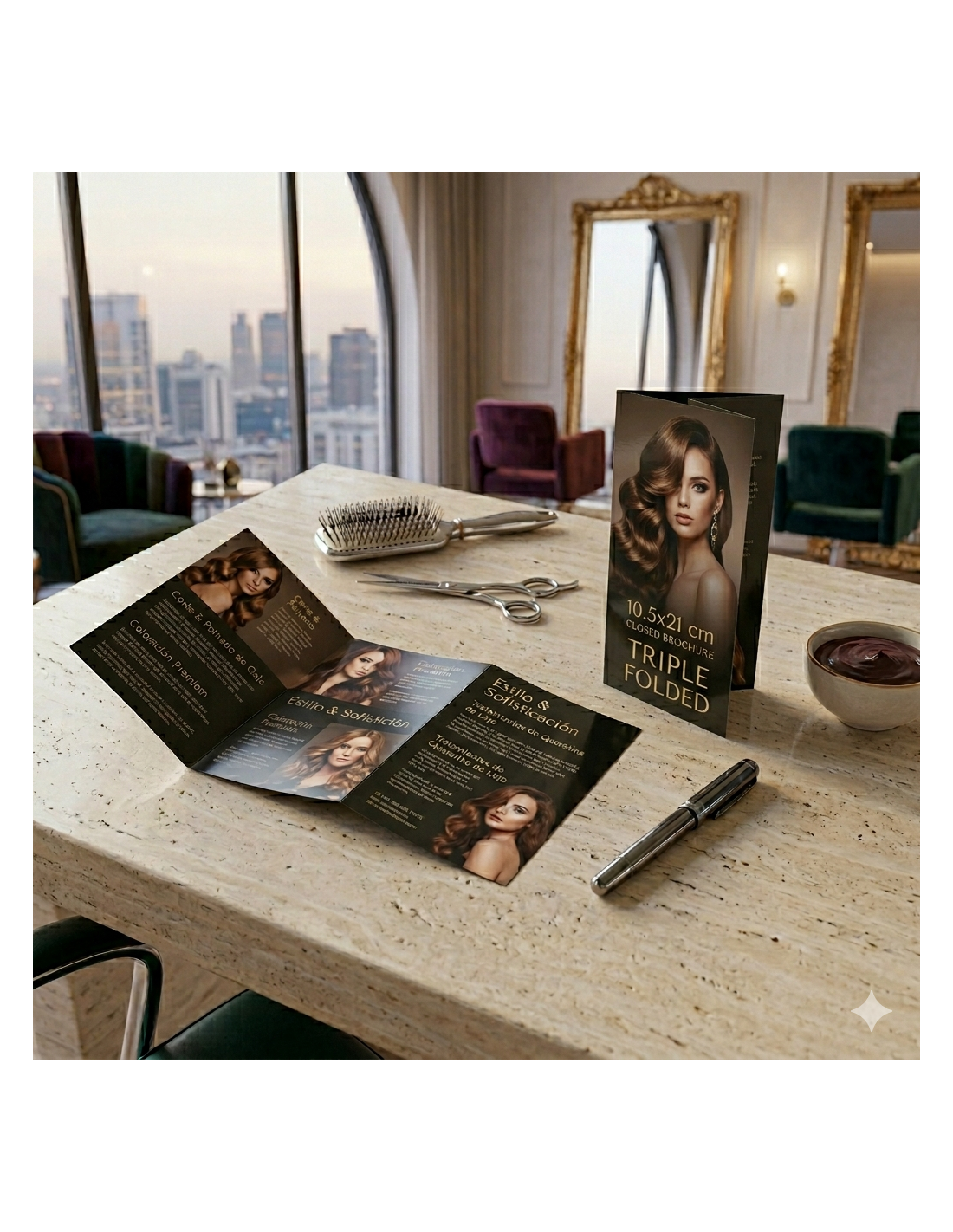 Impresión de folleto plegado tamaño cerrado 15x20 cm a todo color 2 caras