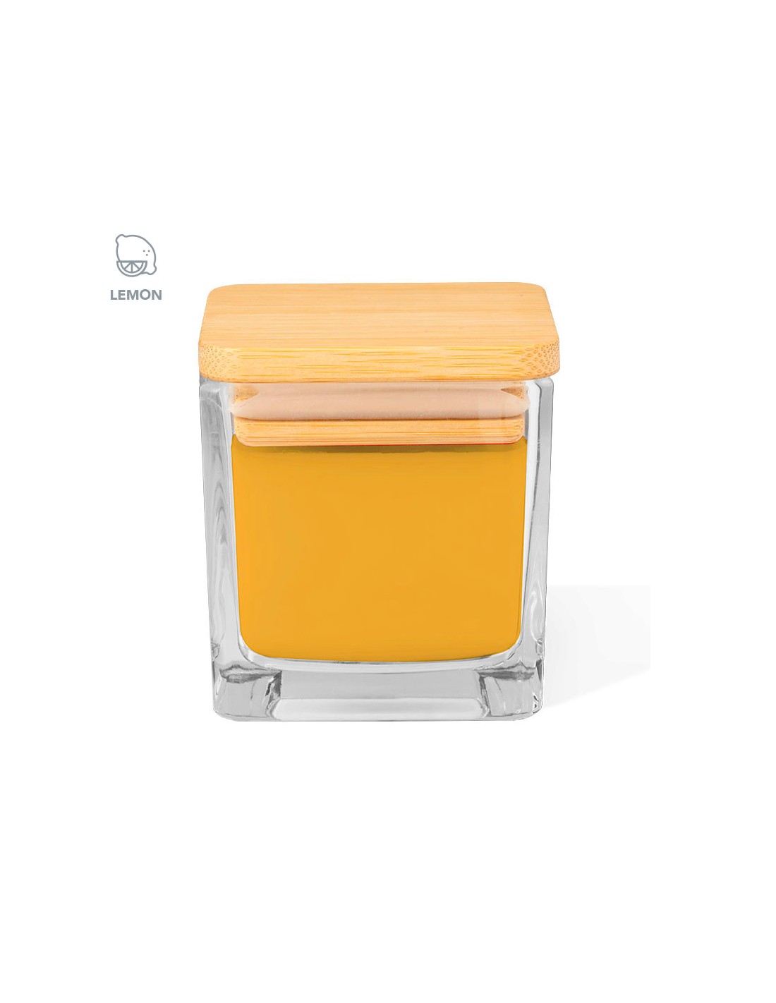 Vela aromática con perfume vainilla. Viene en tarro de cristal transparente, de forma cuadrada y con tapadera en bambú. Presentada en caja individual de diseño kraft. Materiales como el bambú fomentan la utilización de materias primas naturales, reduciendo las emisiones contaminantes. Proviene de una planta de gran resistencia y versatilidad, con crecimiento y regeneración rápidos, siendo una excelente alternativa al uso de madera tradicional. Aroma Vainilla Cristal/ Bambú