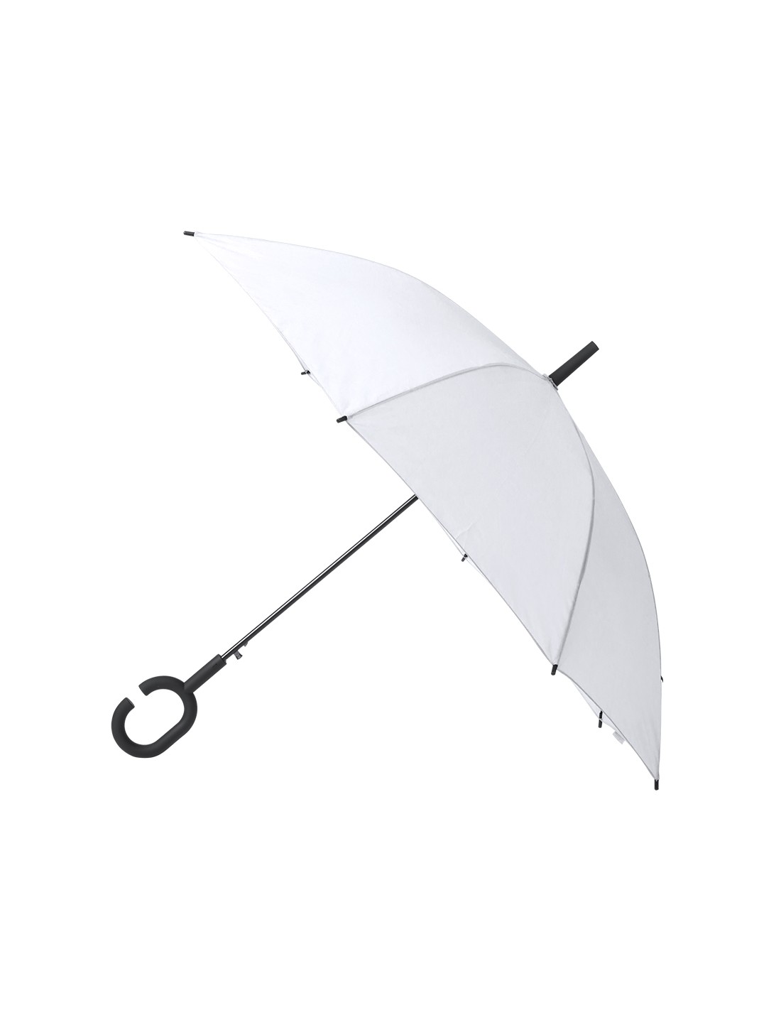 Paraguas de 8 paneles en extensa gama de vivos colores y 105cm de diámetro. De apertura automática, con sistema antiviento y en resistente material poliéster. Con varillas de fibra en color negro y original mango manos libres. 23". Automático. Sistema Antiviento Poliéster 190T. Varillas Fibra de Vidrio