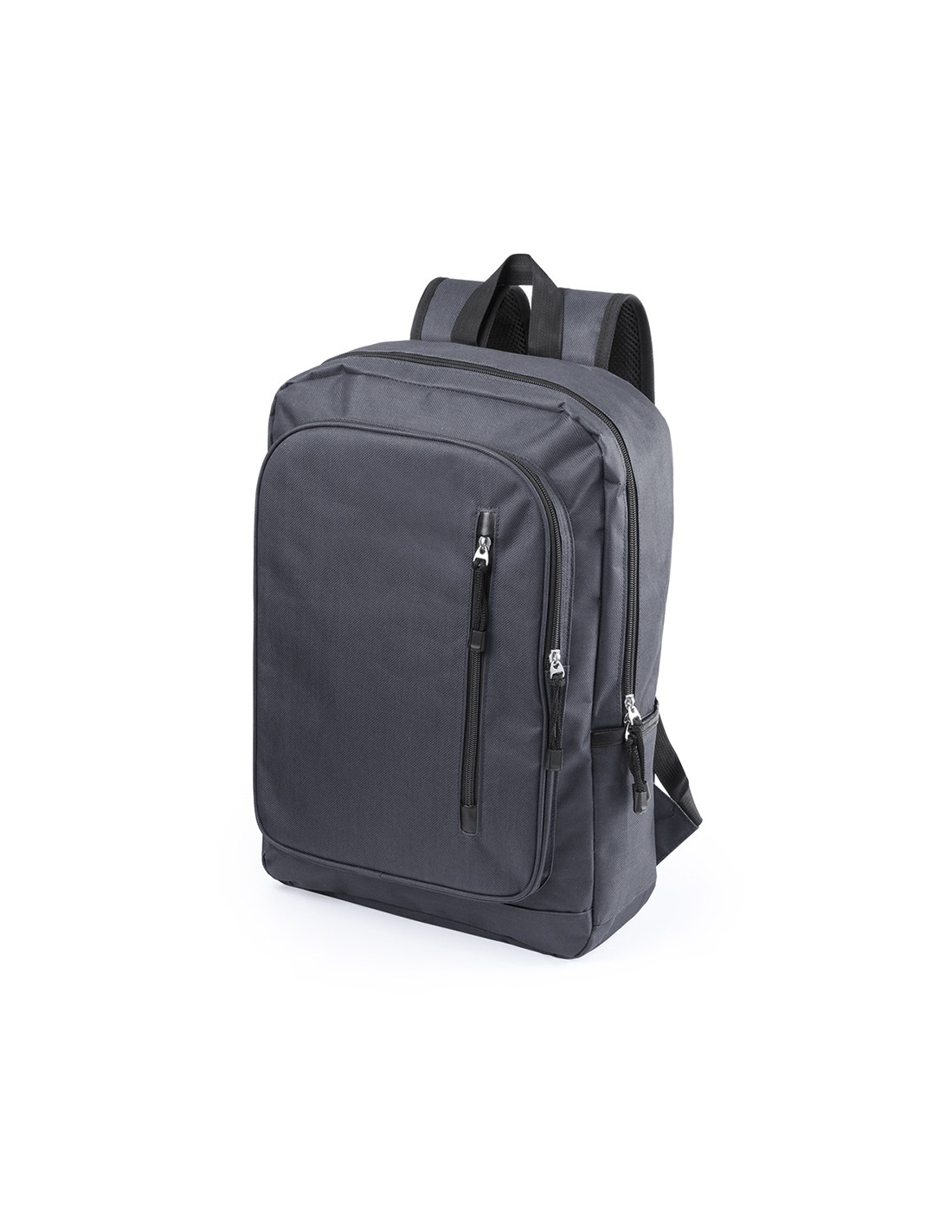 Resistente mochila de poliéster 600D con cierre de cremallera y bolsillos frontales. En sobrios colores, con espalda y cintas de hombros acolchadas, compartimento acolchado interior para portátil de hasta 15 pulgadas y cintas en tiradores para fácil apertura. Bolsillo Acolchado para Portátil. Parte Trasera y Cintas Acolchadas Poliéster 600D