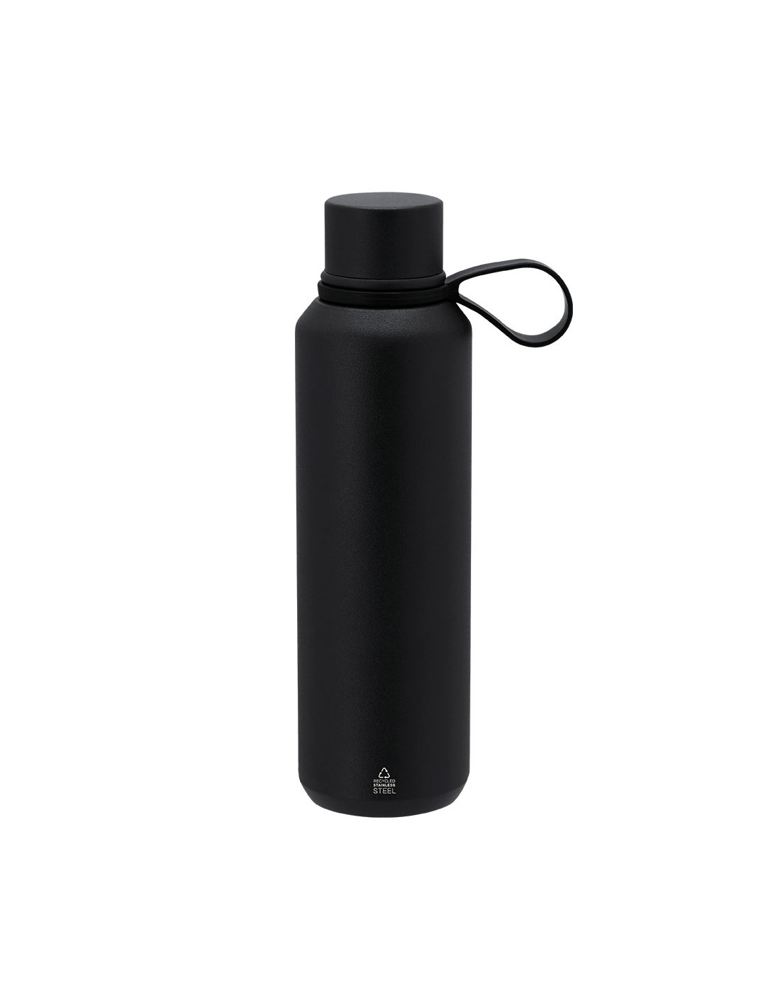 Bidón térmico de 630 ml de capacidad, fabricado en Acero Inox Reciclado de doble pared. Incluye asa de silicona a juego. Libre de BPA. Con distintivo acero inoxidable reciclado.El acero es uno de los materiales más demandados y que puede encontrarse casi en todas partes, desde productos de uso diario a grandes construcciones. Con innumerables propiedades, entre las que cabe destacar la durabilidad y su alto grado de reutilización, convirtiéndolo en una alternativa muy valorada en soluciones de sostenibilidad. Debidamente tratado, permite obtener nuevos recursos de infinita utilización. 630 ml. Aislamiento de Cobre al Vacío Acero Inox Reciclado