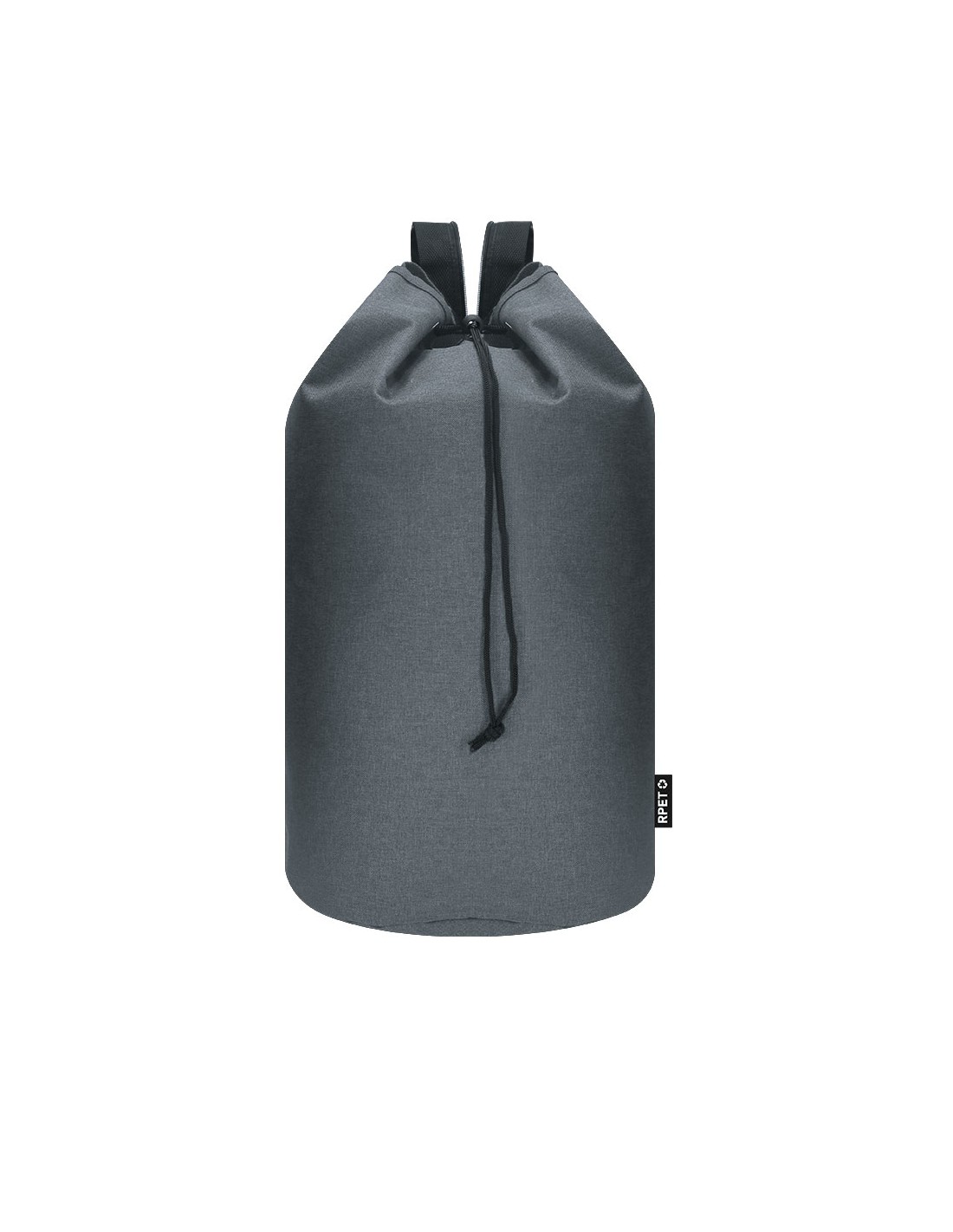 Petate multiusos de gran capacidad en resistente poliéster RPET 600D. Cierre superior de cuerda con accesorio de ajuste y argollas metálicas reforzadas. Cinta de hombros trasera 2 en 1 con cierre de cremallera para transporte en un solo hombro o en los dos. Con distintivo de RPET en etiqueta.El material RPET se elabora a partir de plástico reciclado, para así fomentar la reutilización de residuos plásticos y ayudar a la sostenibilidad del planeta. Cinta 2 en 1 con Cremallera Poliéster 600D RPET