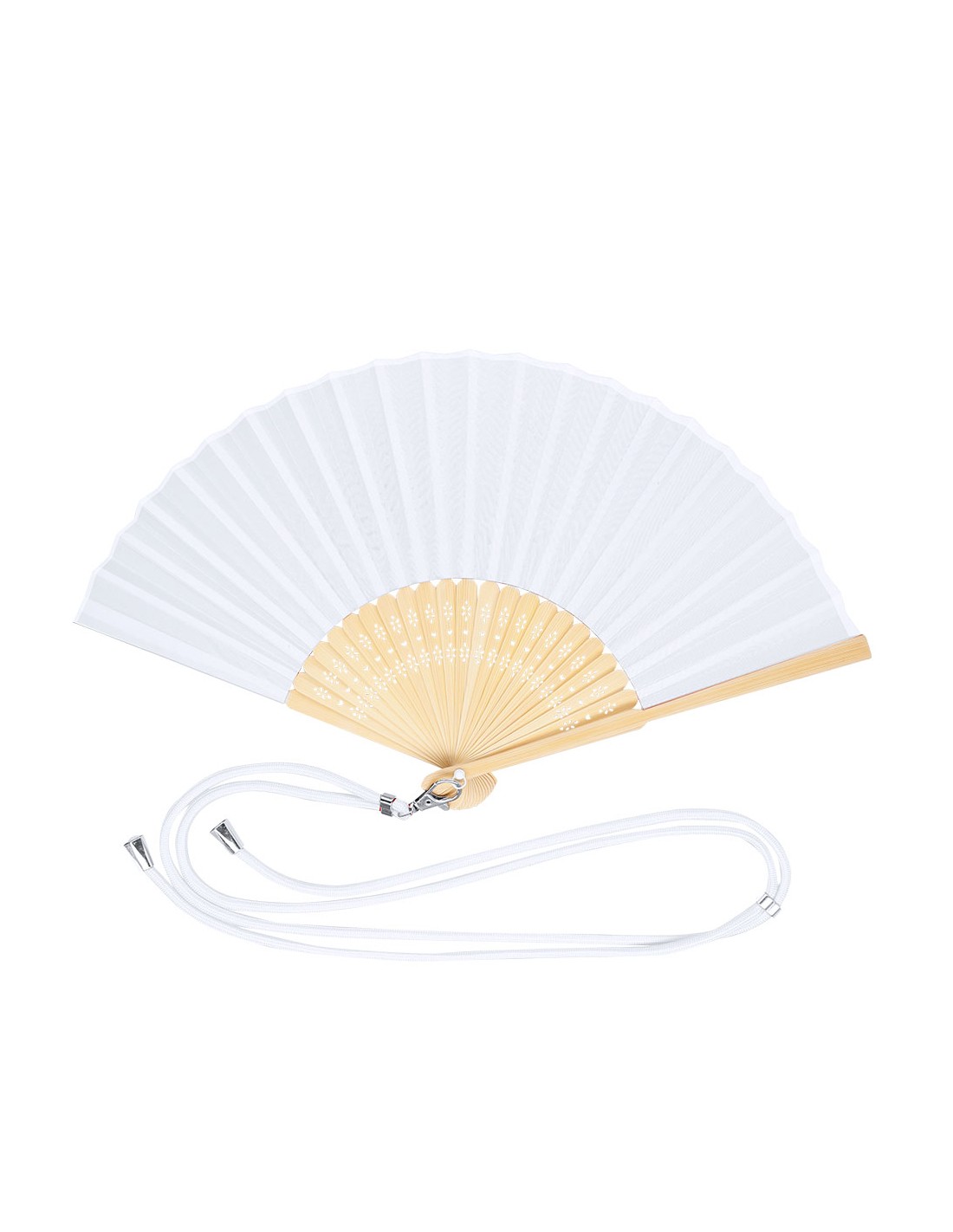 Abanico confeccionado con tela de resistente poliéster 190T y varillas de flexible bambú. Incluye un cordón ajustable a juego con la tela y un práctico mosquetón metálico para fácil transporte.Materiales como el Bambú fomentan la utilización de materias primas naturales reduciendo las emisiones contaminantes. Además, el bambú proviene de una planta de gran resistencia y versatilidad, con crecimiento y regeneración rápida, siendo una excelente alternativa al uso de madera tradicional. Bambú/ Poliéster