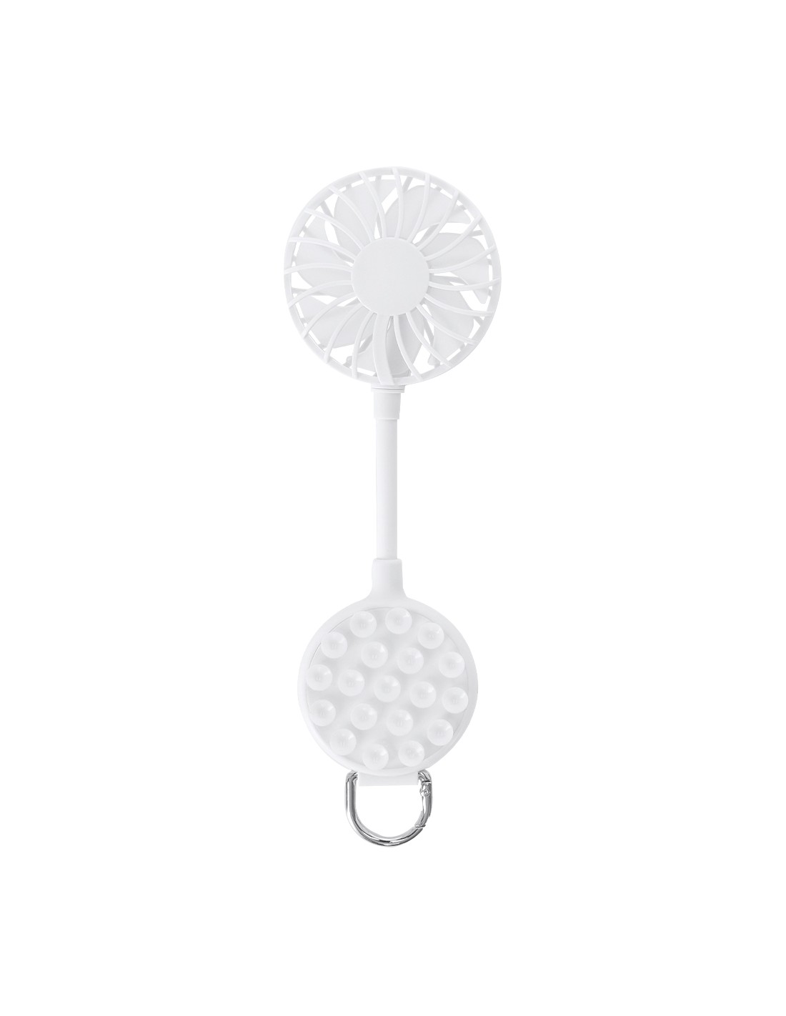 Ventilador multiposición con giro de 360°, fabricado en ABS de color sólido y equipado con ventosa para sujeción del móvil. Incluye soporte ajustable para dispositivo . En su extremo inferior incorpora un mosquetón con anilla metálica. 3 velocidades con ajuste mediante botón, e incluye cable de carga USB A a USB C en el mismo color con batería 300 mAh. Su diseño permite ajustarlo libremente según sus necesidades y adaptarlo a diversas situaciones, proporcionando una agradable sensación de frescura en todo momento Ventosa. Batería 300 mAh