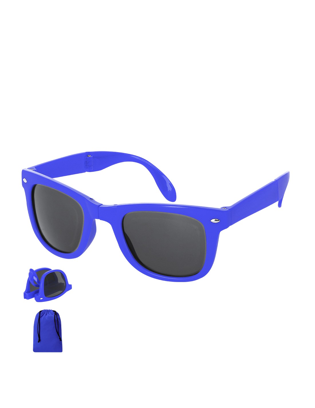 Gafas de sol plegables con protección UV 400. Resistente montura plegable con diseño elegante y acabado brillante. Presentada en una funda del mismo color con textura suave y cierre con cordones ajustables. Plegables. Protección UV400. Funda Poliéster