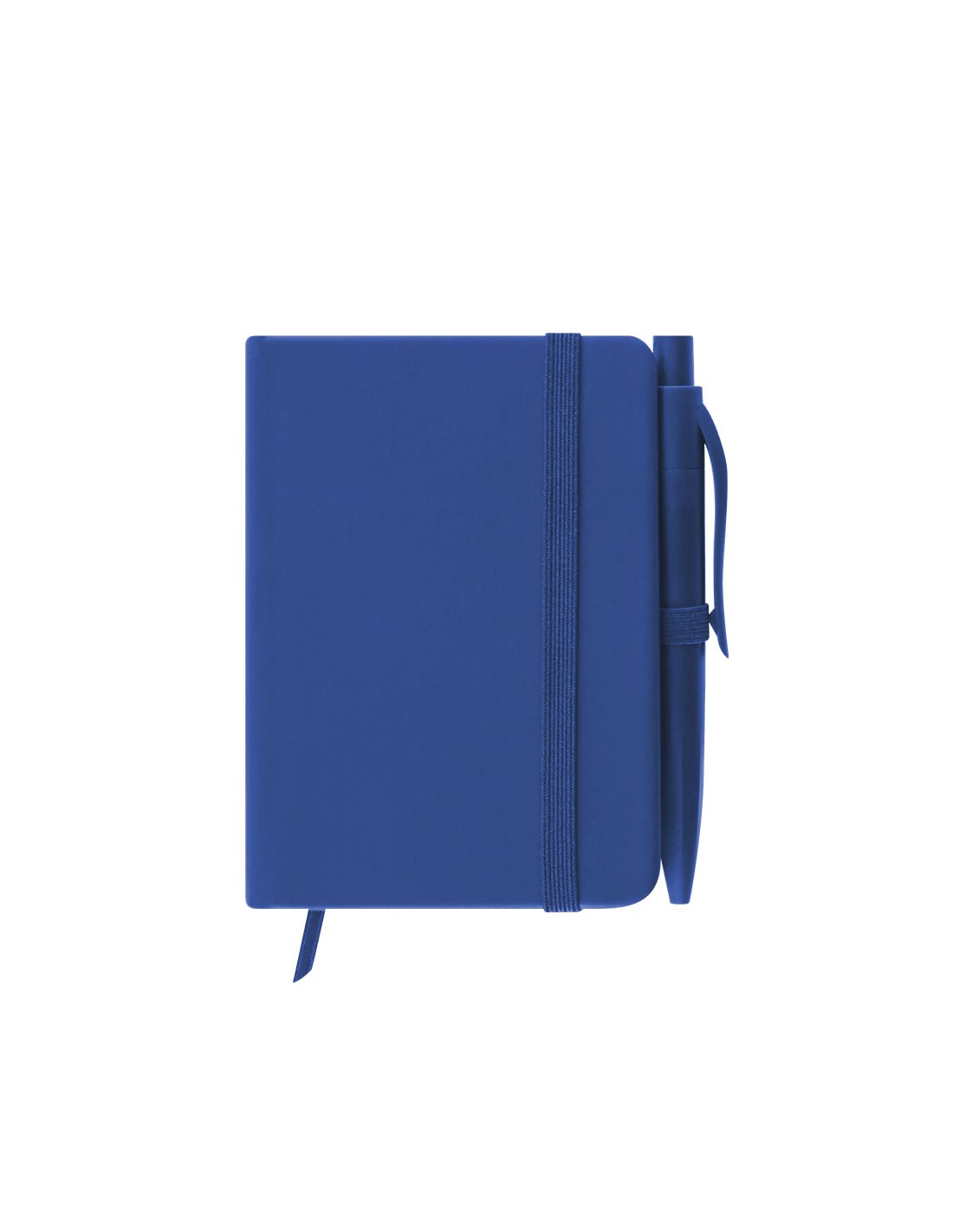 Bloc de notas con tapas rígidas en PU. Incluye 80 hojas en disposición de una raya, elástico de sujeción, marcapáginas de tela y bolígrafo a juego. Portada Rígida. 80 Hojas. Bolígrafo Incluido PU