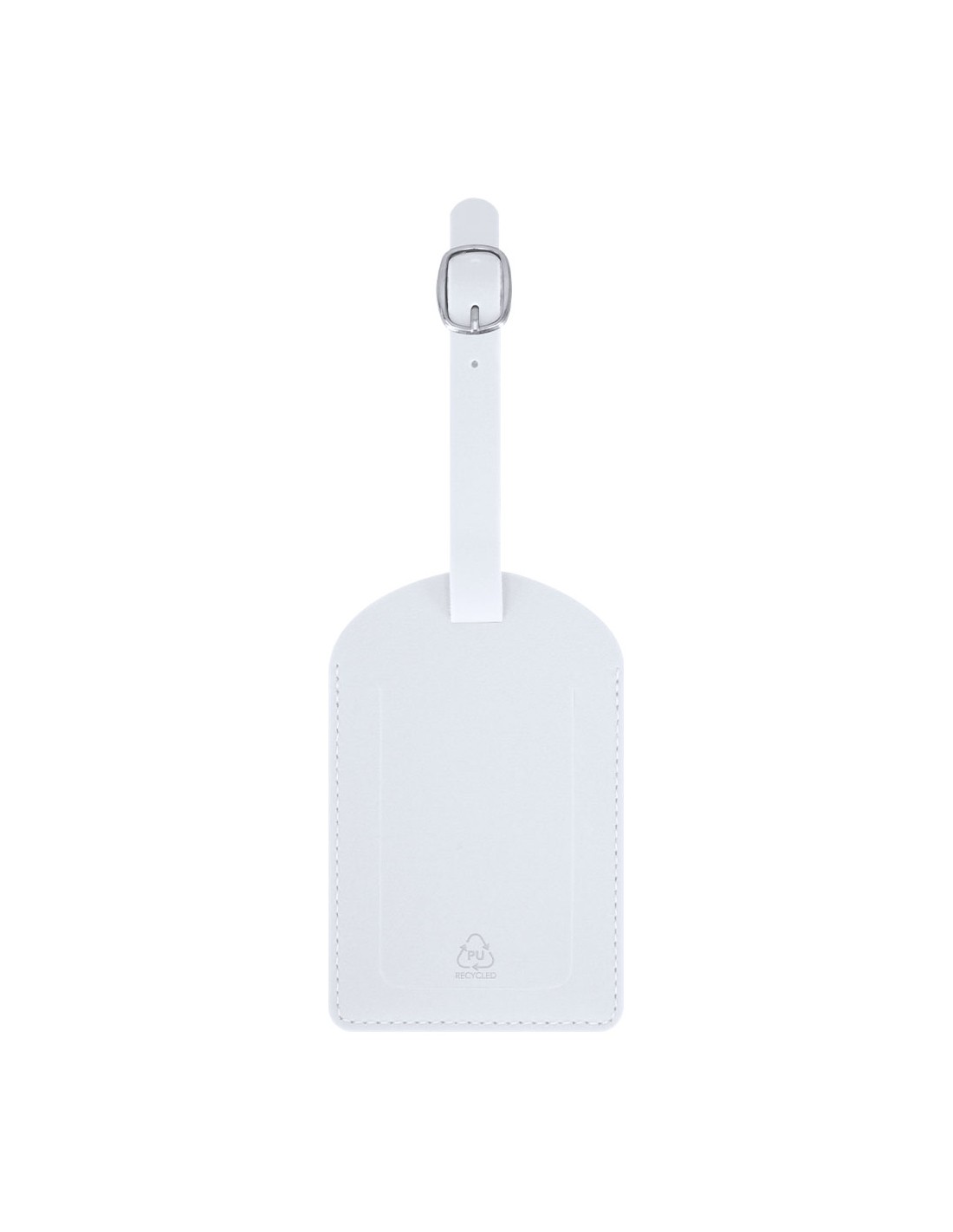 Identificador para maletas fabricado en PU Reciclado. Para enganchar a cualquier maleta gracias a su hebilla ajustable. Con ventana y etiqueta distintiva de PU Reciclado. PU Reciclada