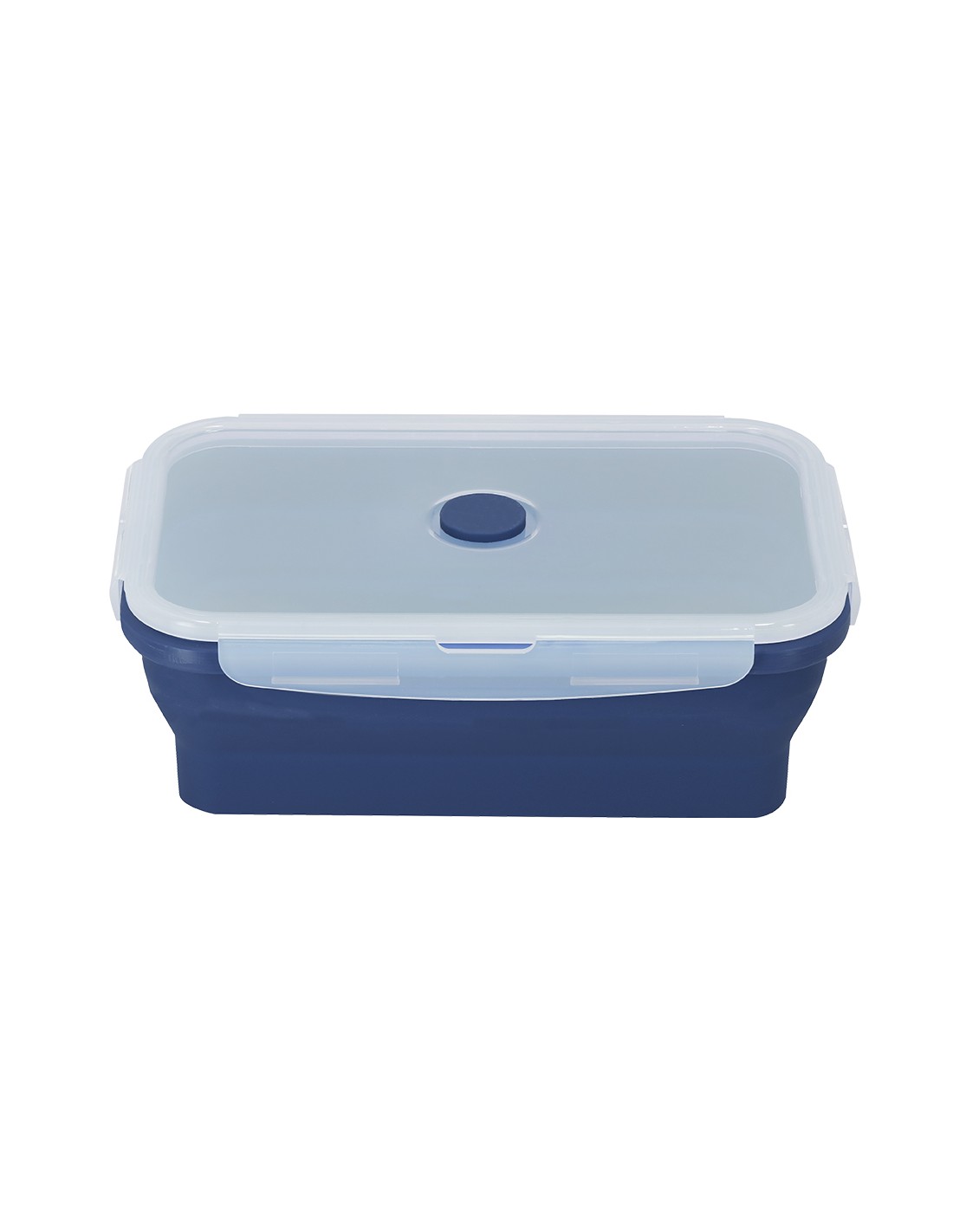 Fiambrera plegable de 1,2 L de capacidad. Fabricado en silicona de alta calidad con tapa en PP rígida translúcida con cierre de seguridad. Con cuerpo flexible de acabado mate, esta fiambrera puede ser plegada para un cómodo y sencillo almacenamiento. Libre de BPA. Con logo Food Grade en base. 1,2 L. Plegable. Cierre Seguridad Silicona