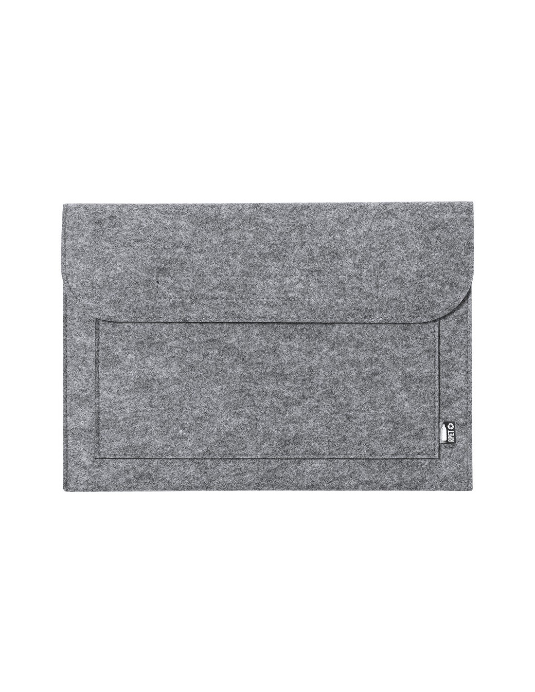 Funda para ordenador portátil de línea nature y en resistente fieltro RPET reciclado, fruto de la combinación del proceso de reciclaje de materiales plásticos junto con la técnica milenaria de fabricación del fieltro, dando como resultado un material de eco-tendencia que, además de ser de origen reciclado, también se convierte en reciclable. Solapa con cierres de velcro y bolsillo frontal, con distintivo RPET en etiqueta exterior. Fieltro RPET