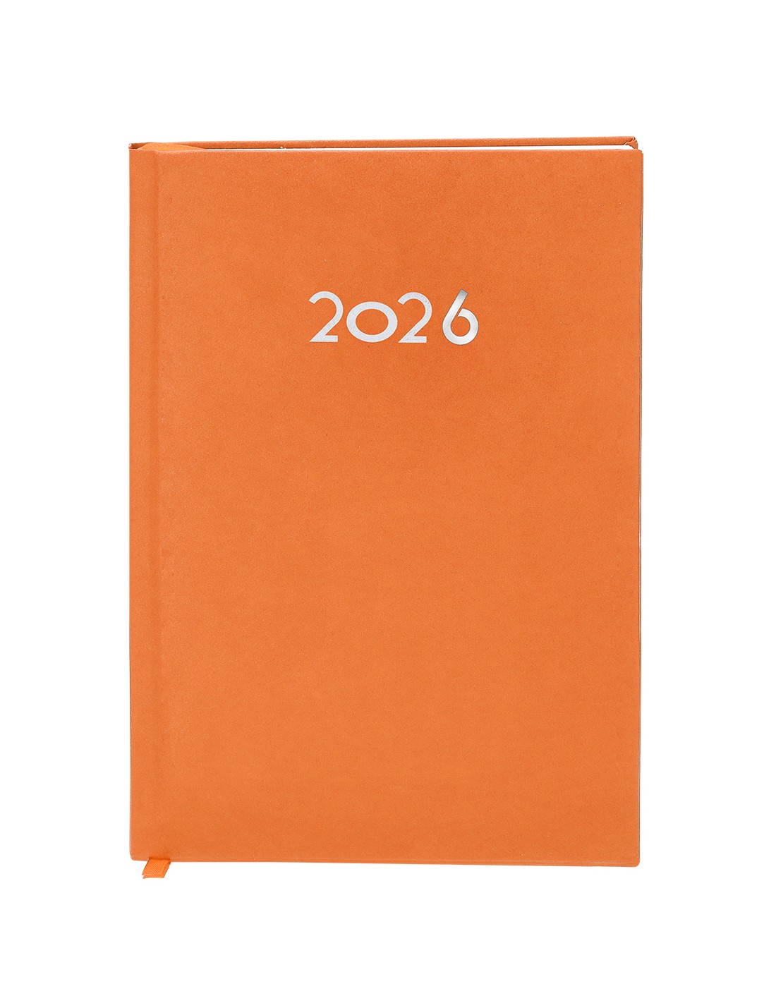 Agenda de tamaño A5 acabada en suave PU. Con cubiertas rígidas y acolchadas. Incluye caja kraft de presentación.Diseño página día y marcapáginas de tela. En 2 idiomas: castellano e inglés. Página Día. Caja Presentación Incluida PU