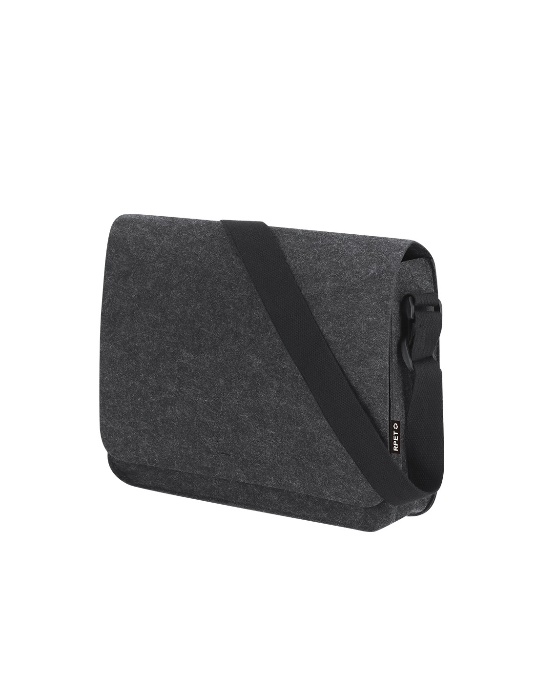 Bandolera confeccionada en Fieltro RPET con diseño urbano. Accesorio para ajuste en bandolera, con compartimento interior para ordenador portátil y documentos. Bolsillo con cierre en velcro. Distintivo RPET en etiqueta.El fieltro RPET es fruto de la combinación del proceso de reciclaje de materiales plásticos junto con la técnica milenaria de fabricación del fieltro, dando como resultado un material de eco-tendencia que, además de ser de origen reciclado, también se convierte en reciclable. Fieltro RPET