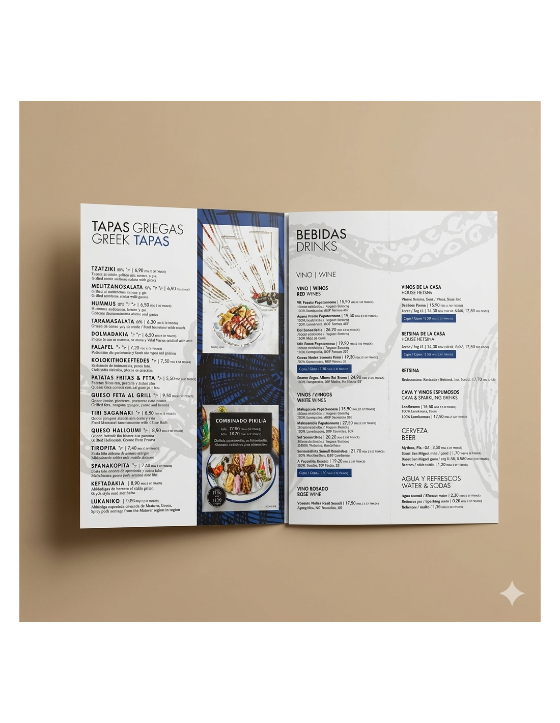imprimir Carta menú para bar o restaurante Tríptico A4 cerrado - 63x29,7 cm. abierto con entrega gratis