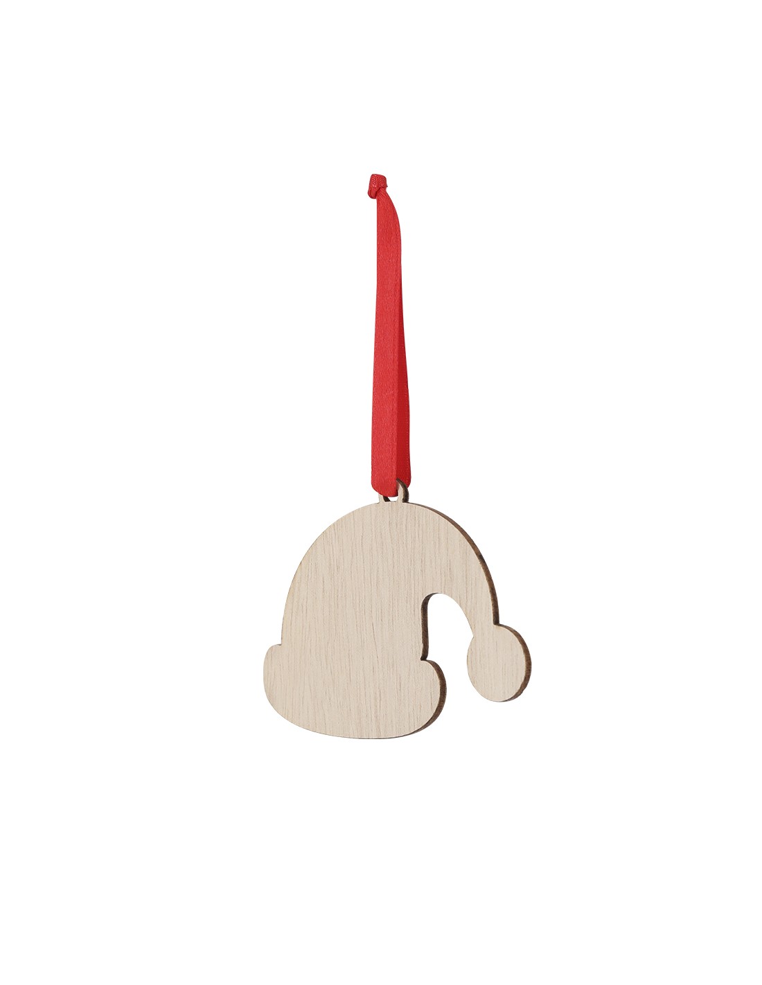 Adorno navideño fabricado en suave madera natural. Disponible en varios diseños: Gorro de Papá Noel, Árbol de Navidad y Bola de Navidad. Incluye lazo colgador en color rojo. Especialmente diseñado para marcaje en sublimación.Elaborado con elementos vegetales para fomentar así la utilización de materias primas naturales y reducir las emisiones contaminantes. Madera