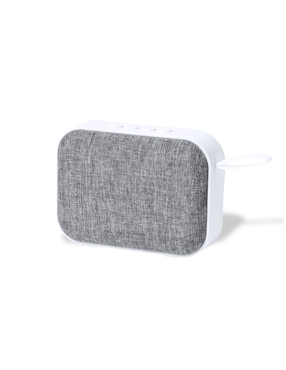 Altavoz de conexión Bluetooth 5.0 de diseño bicolor, con rejilla de poliéster y asa de transporte a juego en silicona. Ofrece 3W de potencia, tiene función de manos libres y función radio FM. Reproducción mediante USB, ranura para tarjetas micro SD de hasta 32GB de capacidad y entrada auxiliar de línea mediante conexión jack de 3,5mm, con base antideslizante. Compatible con iOS y Android, incluye cable de carga micro USB y además está disponible en una extensa gama de colores. Presentado en atractiva caja de diseño. Conexión Bluetooth. Potencia Sonido 3W. Batería 400 mAh Poliéster