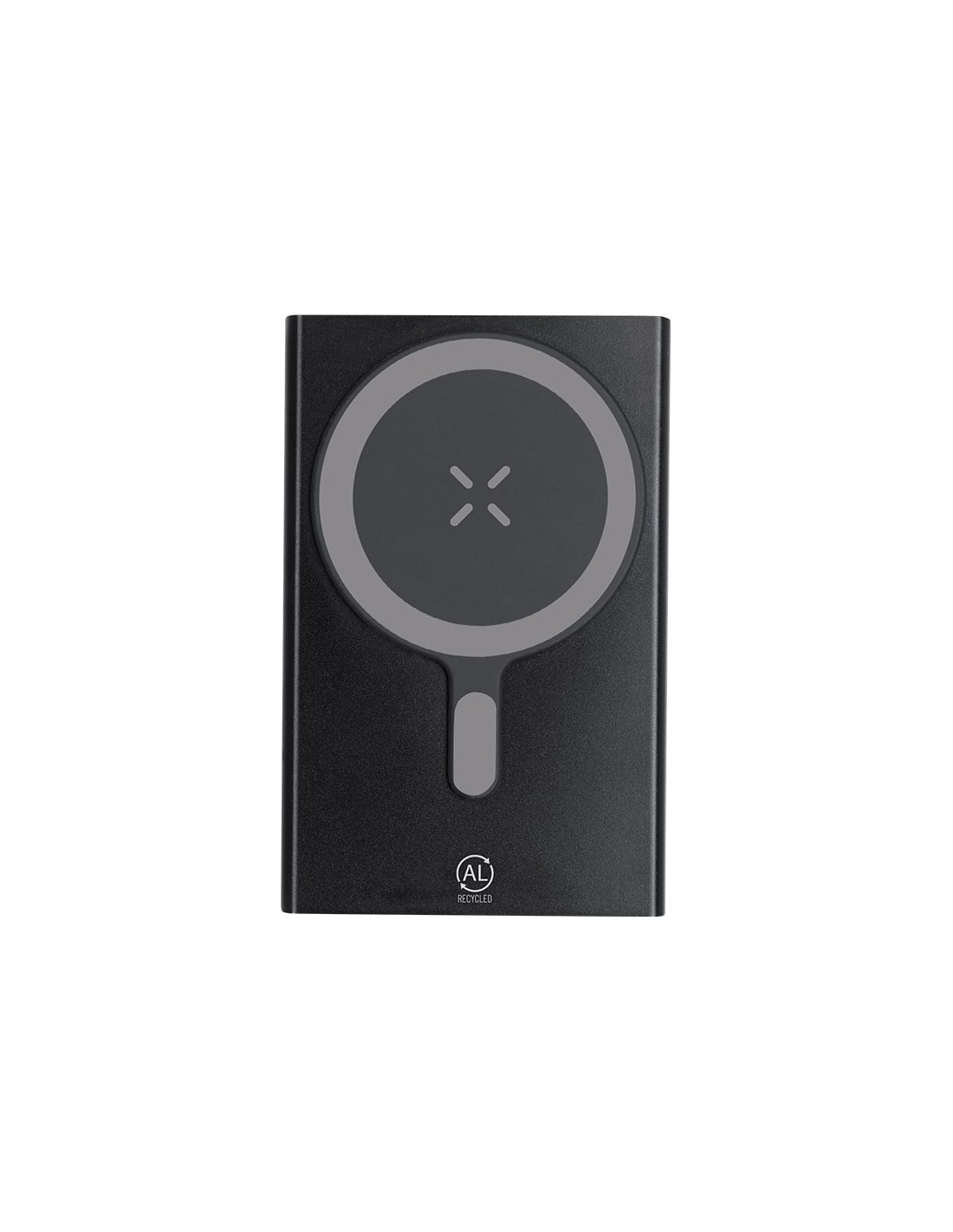 Batería auxiliar externa de 5.000 mAh fabricada en Aluminio Reciclado, con carga inalámbrica de 15W para tecnología Qi y fijación magnética Magsafe y entrada/salida USB Tipo C. Indicadores LED de estado de carga, botón de encendido/apagado y cable de carga Tipo C incluido. Incluye distintivo de Aluminio Reciclado.El Aluminio Reciclado es un material con posibilidades de reciclaje casi infinitas, sin perder sus propiedades originales y consumiendo menos energía en este proceso.Certificación GRS (Global Recycled Standard / Estándar de Reciclaje Global), que garantiza el origen reciclado del material usado para fabricar el producto.Entrada/Salida USB Tipo C: 5-9 V CC 1-1,67 ALas capacidades mostradas en todas nuestras baterías auxiliares externas son reales, incorporando todas ellas baterías de grado A y no recicladas, con una vida útil de al menos 500 ciclos de carga y según normativa CE.Además, están fabricadas conforme a los estándares RoHS y en cumplimiento con los siguientes requisitos de seguridad:Sistema de protección contra sobrecarga del power bank.Sistema de protección contra descarga completa que proporciona una mayor durabilidad del power bank.Sistema de bloqueo para evitar cortocircuitos.Sistema de transferencia de carga constante, acorde con la capacidad del dispositivo de destino. Inalámbrico 15W. Magnético. 5000 mAh. Salida y Entrada Tipo C Aluminio Reciclado