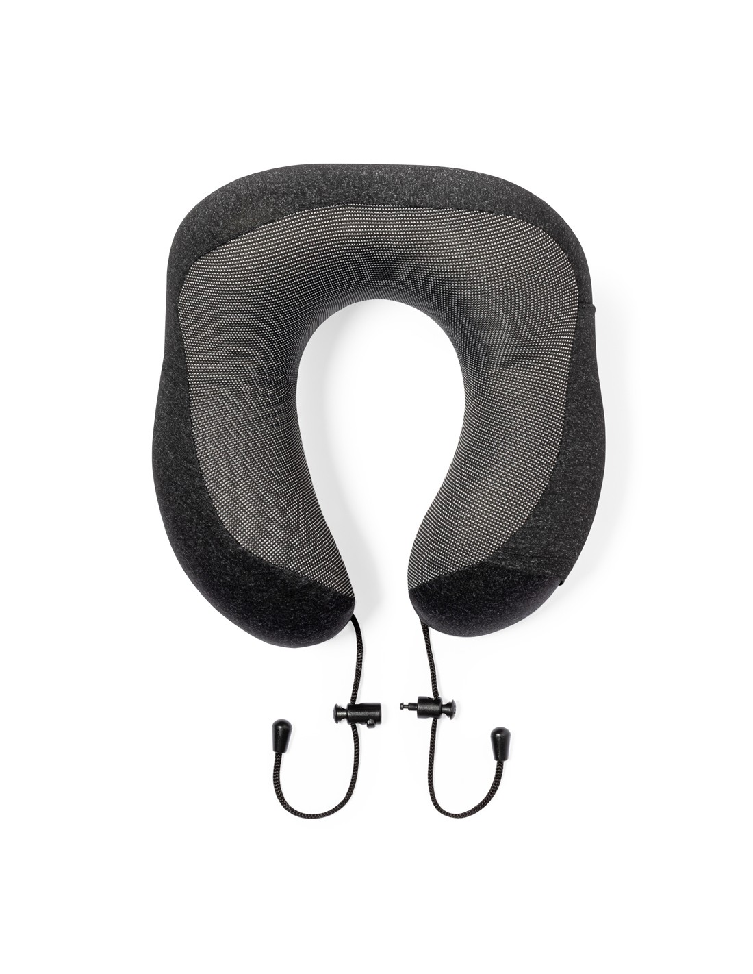 Cómoda almohadilla portátil acolchada para cuello. Máxima experiencia de confort para cualquier viaje gracias a la almohadilla de suave tacto y los cierres de cordón para un correcto y cómodo ajuste. Con funda confeccionada en RPET para protegerla en el transporte y etiqueta distintiva. El material RPET se elabora a partir de plástico reciclado, para así fomentar la reutilización de residuos plásticos y ayudar a la sostenibilidad del planeta. Funda Poliéster RPET Poliéster
