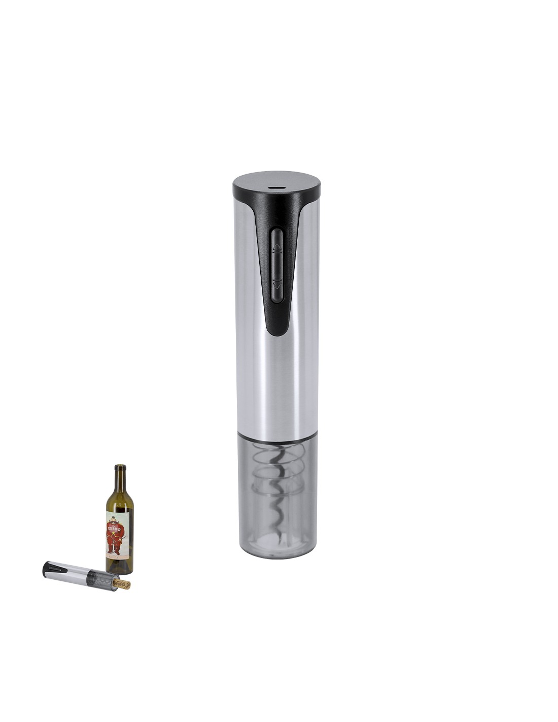 Sacacorchos eléctrico elaborado en acero inoxidable y ABS. Cuenta con botón indicador de extracción y expulsador de corcho. Con indicadores de luz durante la carga y uso. Batería recargable de 500 mAh, incluye cable de carga tipo C. Un dispositivo fácil de usar y funcional. Batería 500 mAh Acero Inox/ ABS